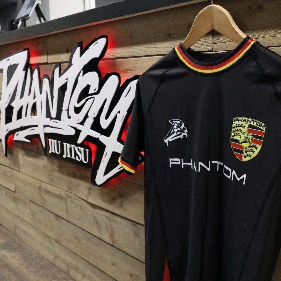 Inspired by the classic Porsche motorsport design, the Phantom X Porsche Rash Guard pairs a deep black base with red and gold racing accents for a clean, heritage-driven look.